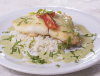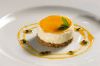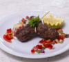 Beef tenderloin with pea purée and confit cherry tomatoes