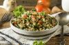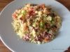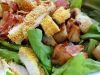 Tuna salad with lettuce, black olives, tomatoes, Tybo cheese and corn